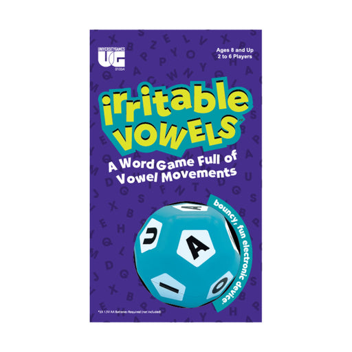 Minimum players: 2 Maximum players:6 Age: 8+ Irritable Vowels is the jumpy bumpy word game where the vowels have a mind of their own! When the vowe...